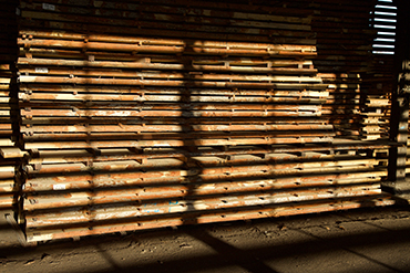 Our 40 mm and 50 mm thickness is airdried for about 2 years on stickers before being kiln dried to 10%. It is a very long drying process which is needed to dry Oak correctly and to avoid honeycombs with inside discoloration.